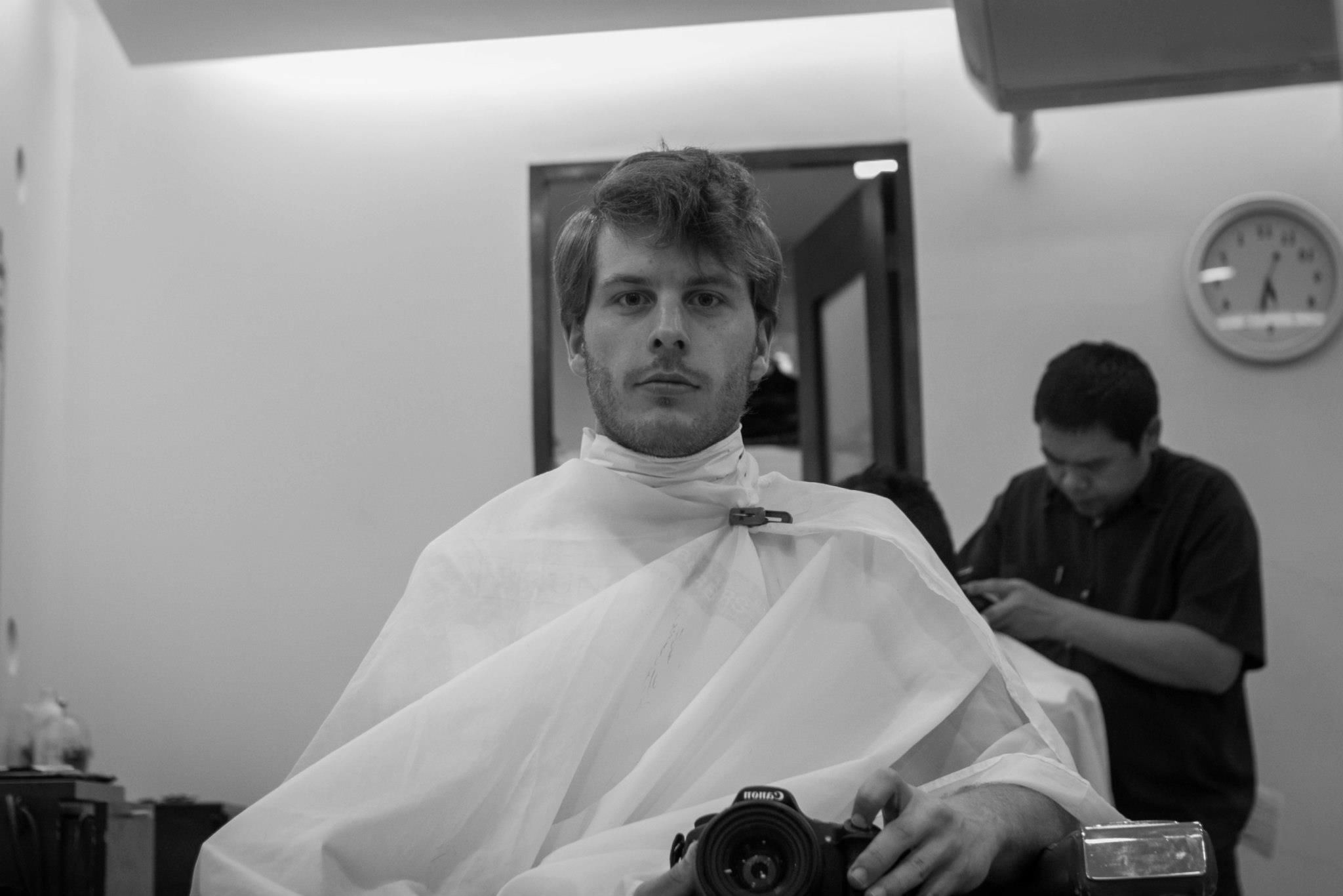 He started by having a look at my hair implantation then he started to cut everything with a razor. Yeah, not the electric razor but a straight one. I never had such a precise and cleanhair cut even though the final looked more like a perfect Playmobil than a publicly correct hair style.